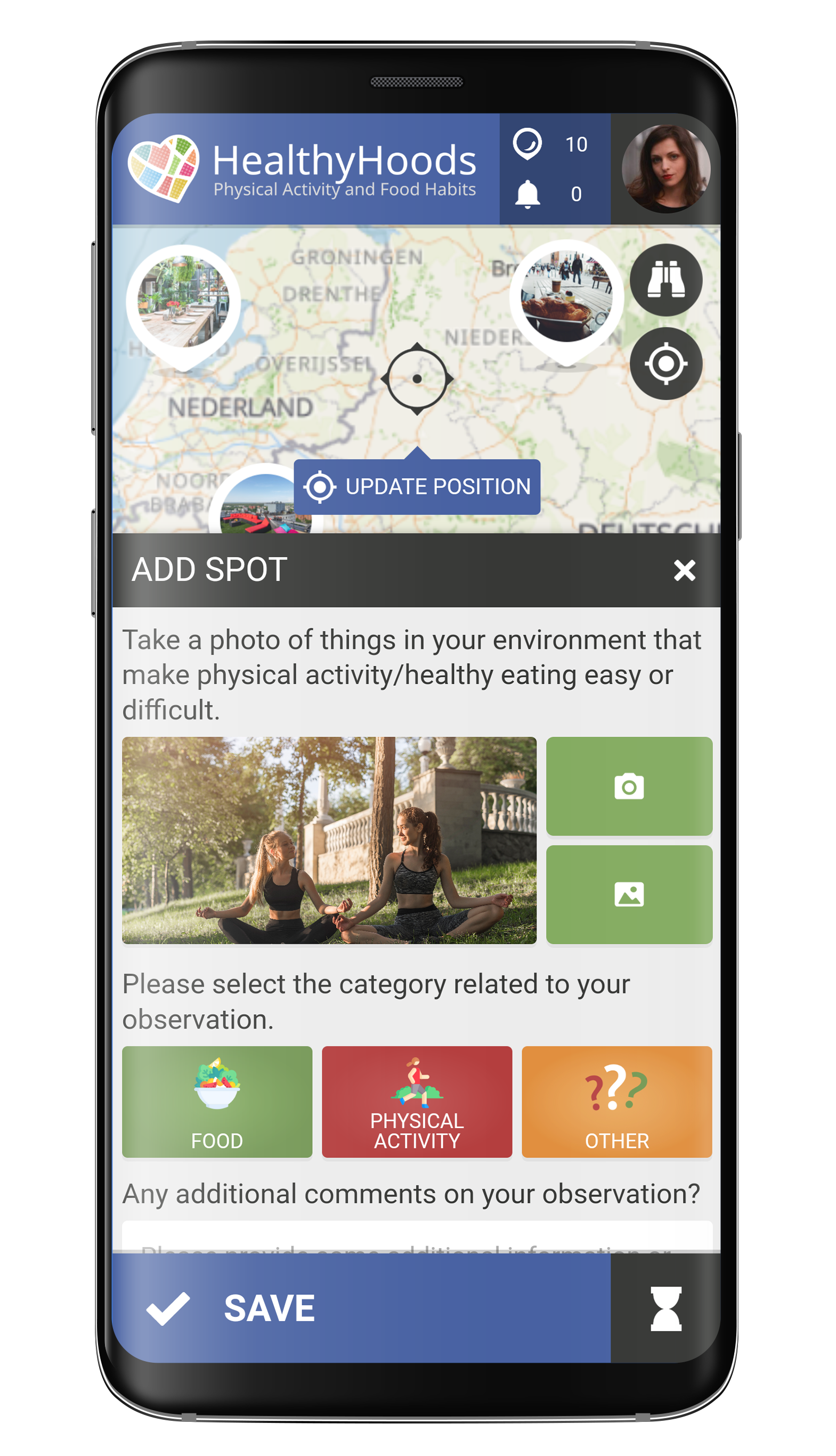 Through the HealthyHoods App, users can document and share information about their neighborhood, helping to identify factors that encourage or restrict healthy living. This Citizen Science initiative fosters a community-based approach, where local stakeholders, citizens, and researchers work together to develop innovative solutions that improve the awareness and knowledge of healthy lifestyles in communities.