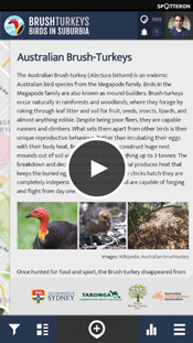 Every project's app and an interactive map includes an information area for content like the project description, information about the topics of observations, media elements (pictures, graphics, link to online videos) and more. The information panel's content is working even without an internet connection and is always accessible.
