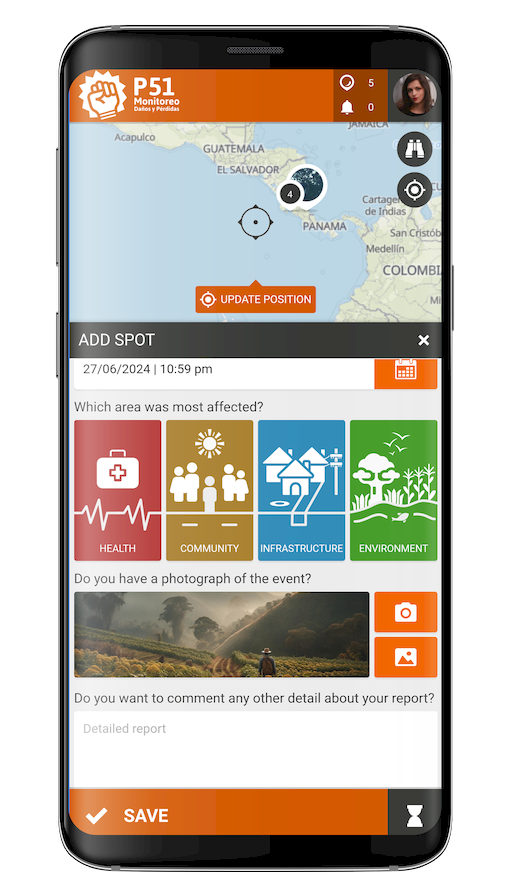 Thus, with the P51 App, participants can collect and record data that will help to demonstrate and modify the responses of various sectors such as planning, risk management and political spaces in the face of climate change. These reports that are shared with the La Ruta del Clima team will be used to generate documents and research around the urgency on addressing damage and loss. Especially the users who are part of the affected communities and experience the damages of climate change on a daily basis contribute through the P51 Citizen Science tool to the process of defining actions and repairs.