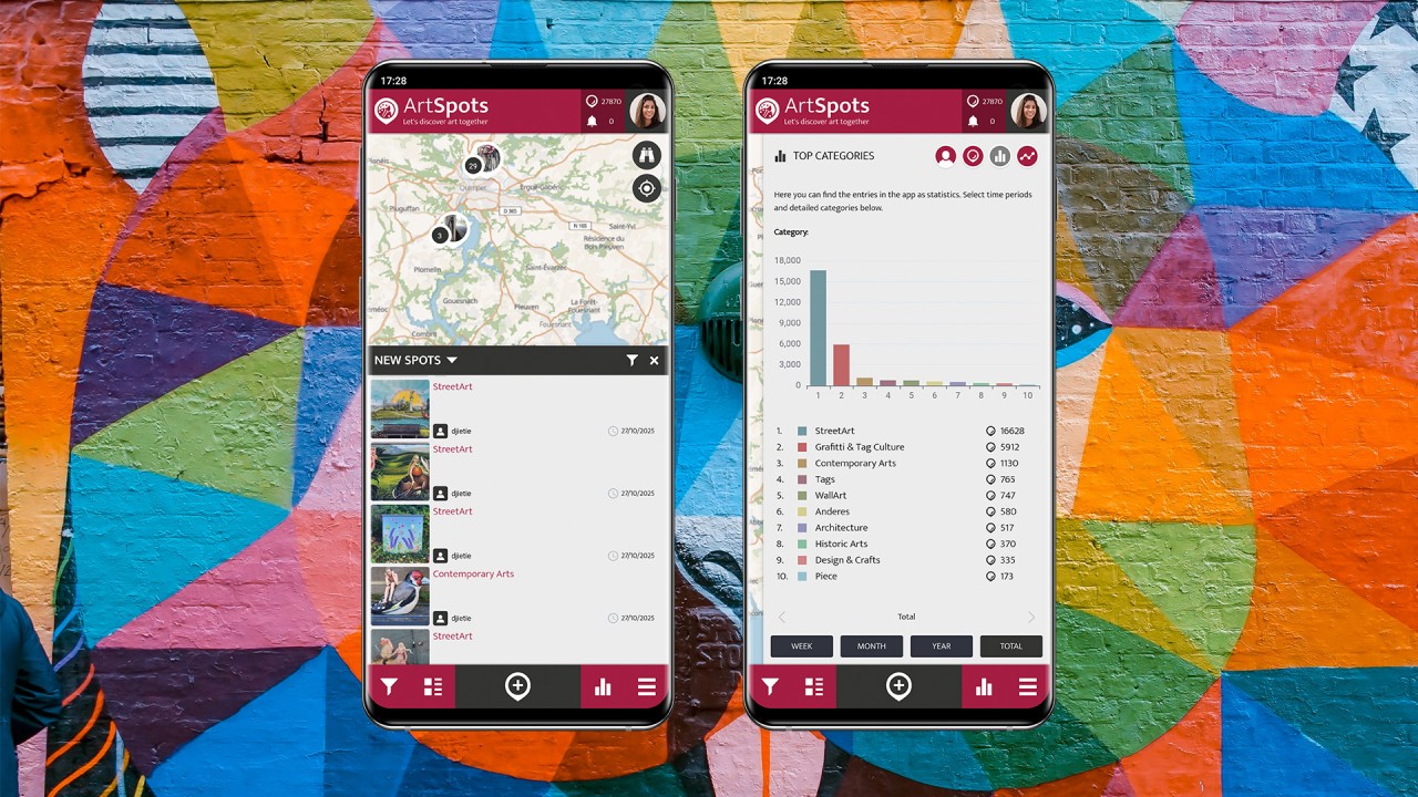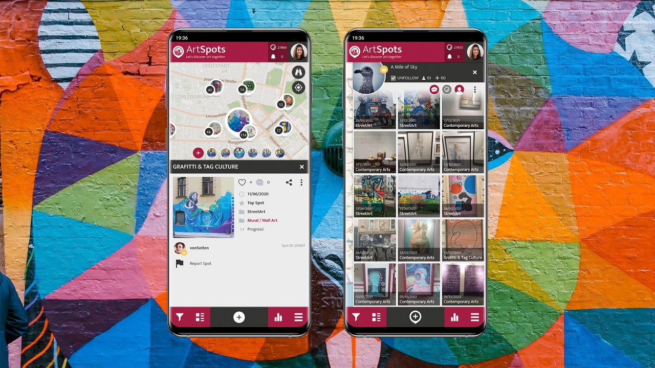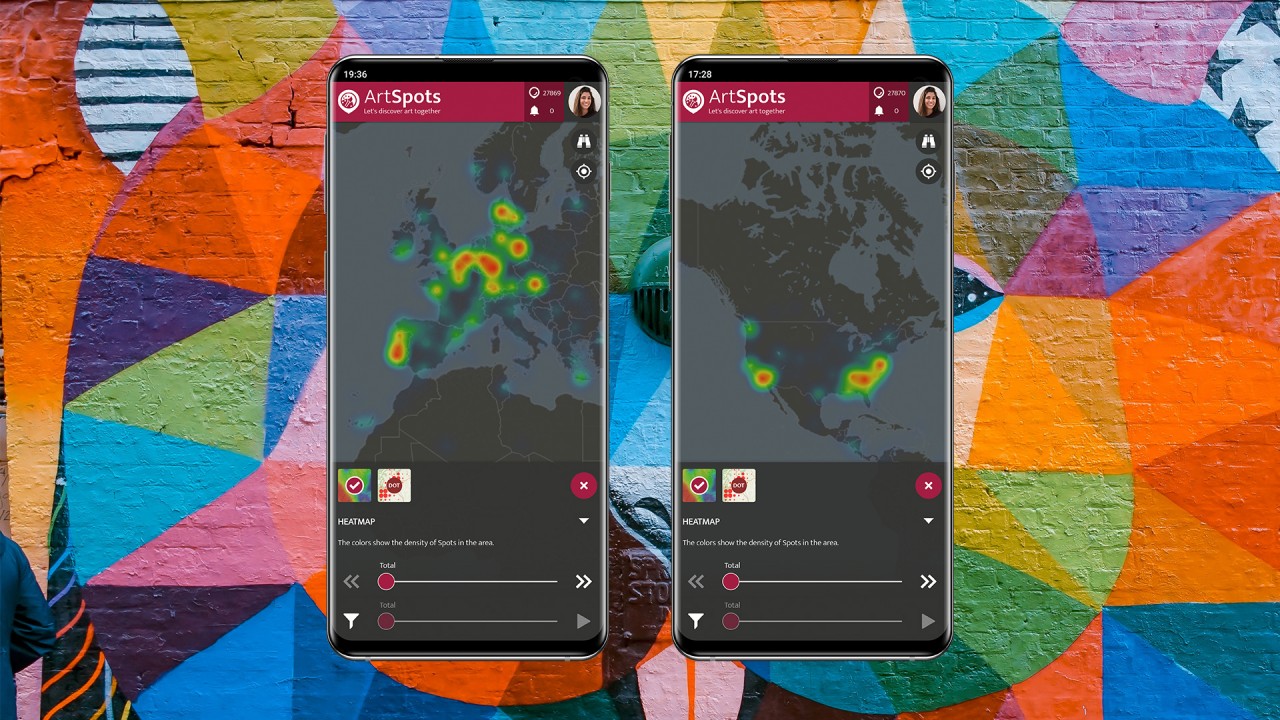 At the moment ArtSpots App holds over 27 000 worldwide entries with Street Art and Graffiti & Tag Culture spots being most present. European cities known for their artistic treasures like Berlin, Vienna, Lisbon are also well represented with numerous entries in the App. Spots from the Pacific Ocean or across the Atlantic Ocean - all represent a diversity of art styles.