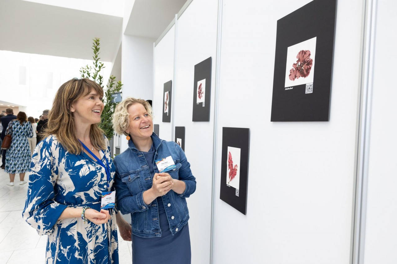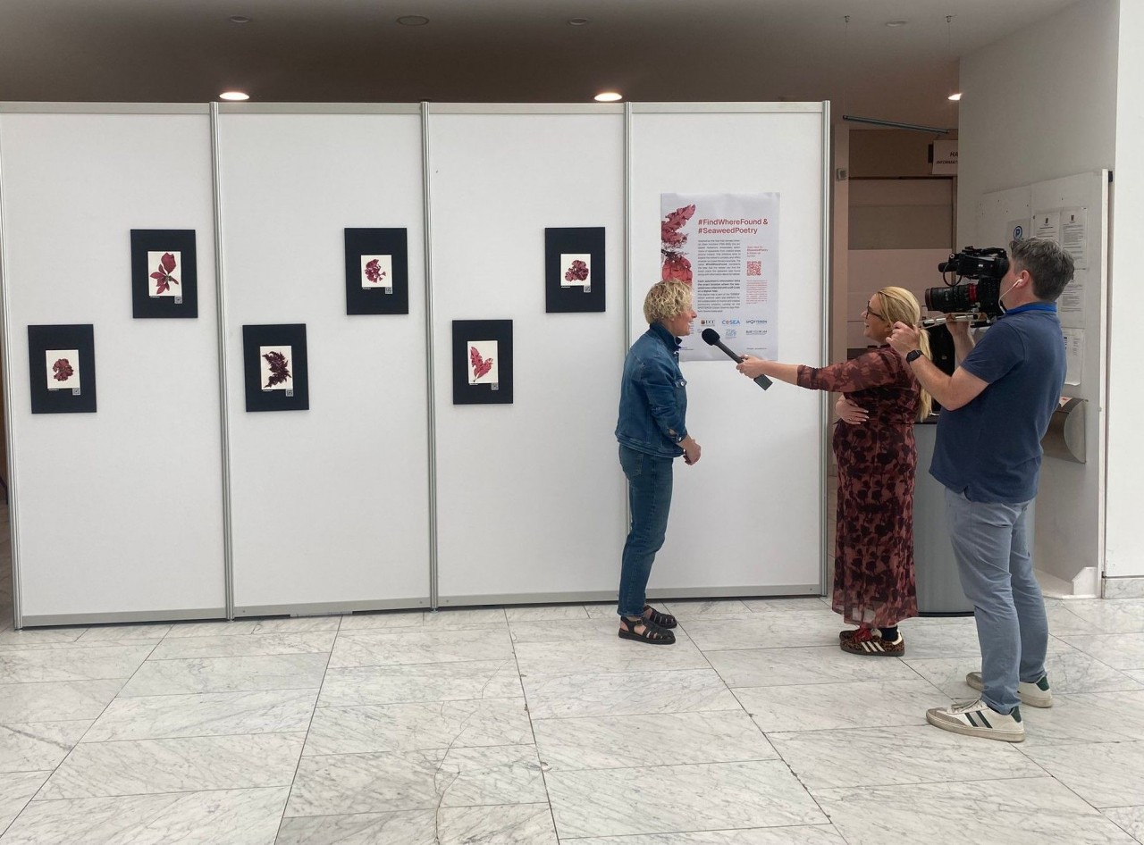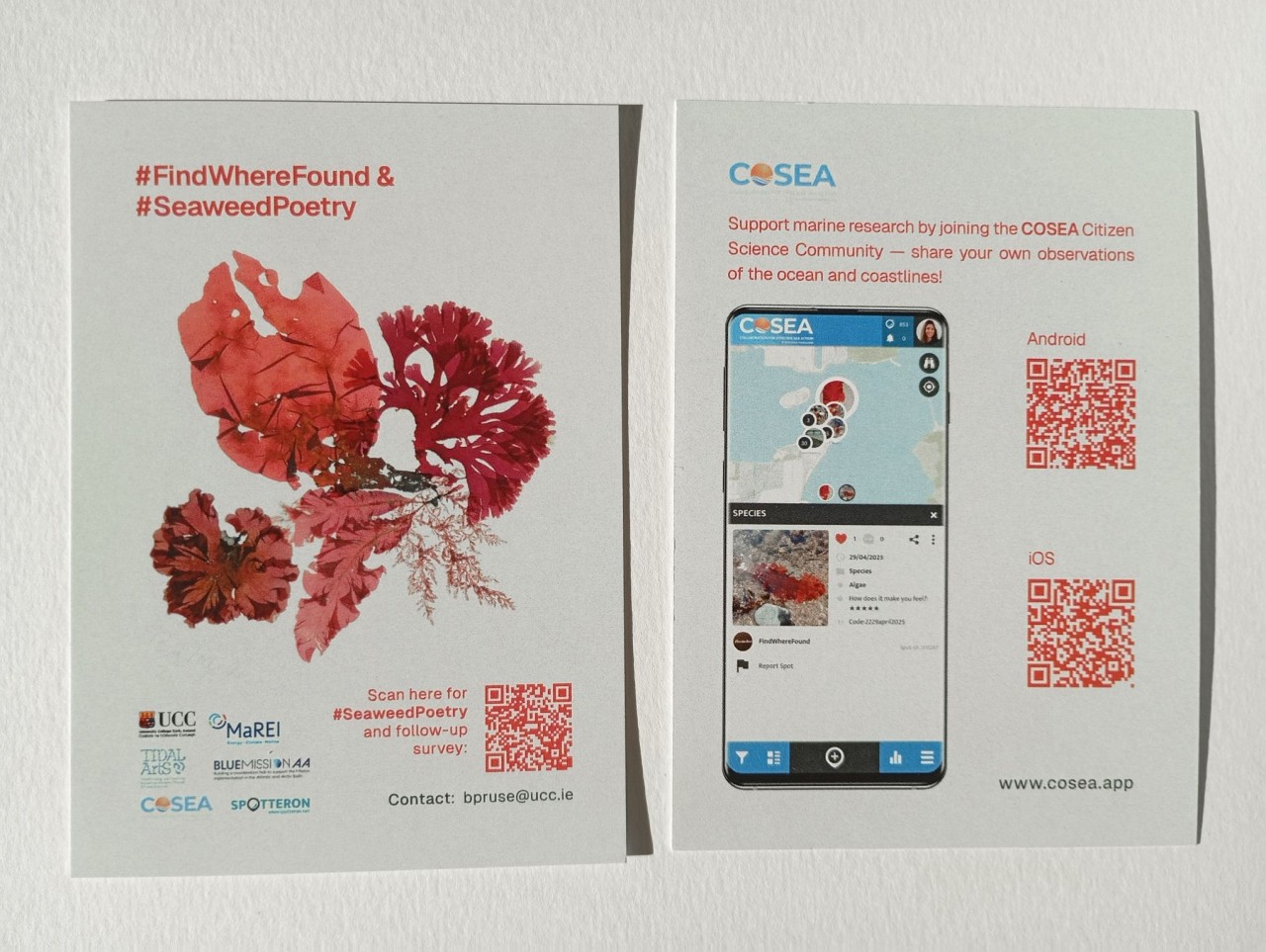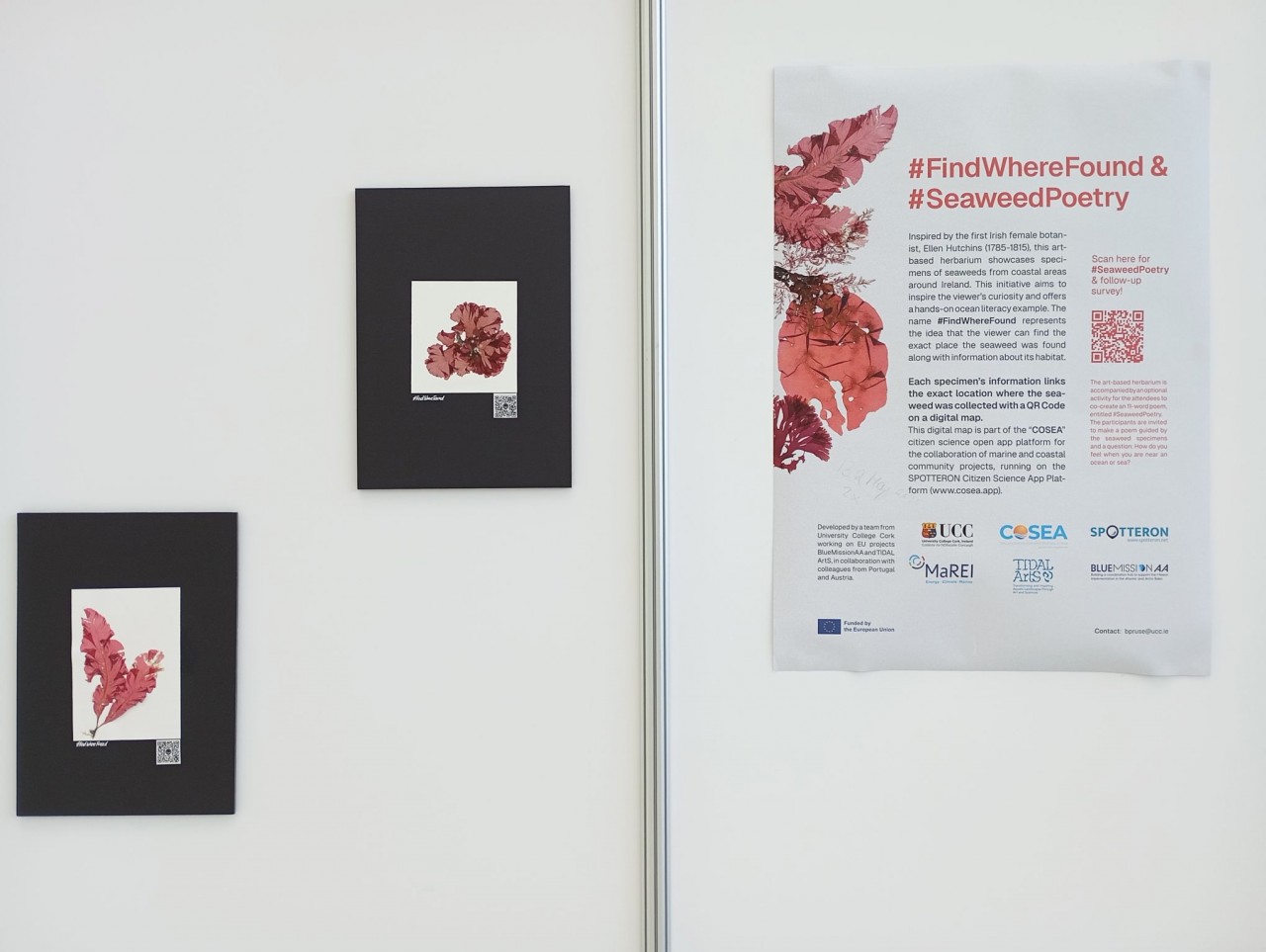 The art-based herbarium in public venues is accompanied by an activity for the public to co-create an 11-word poem - #SeaweedPoetry. The participants are invited to make a poem guided by a self-selected seaweed herbarium specimen and a question: How do you feel when you are near an ocean or sea? The recent expo of 40 art-works took place at European Maritime Day in Cork, Ireland. Although we were not present ourselves there we loved the end results and contributed with designing postcards and posters to accompany the activity.