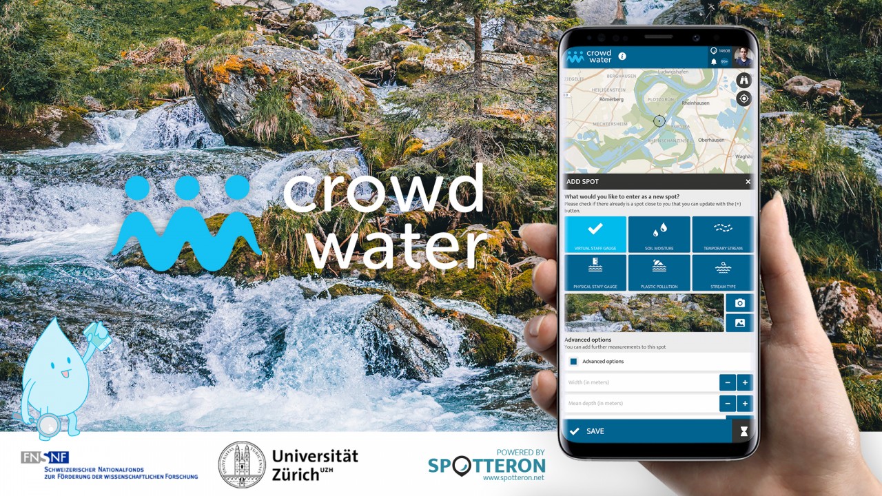 CrowdWater is a global Citizen Science project initiated by the University of Zurich, which collects hydrological data. The goal is to develop a cheap and easy data collection method that can be used to predict floods and low flow. The long-term aim of the project is to complement existing gauging station networks, especially in regions with a sparse measurement network, such as in developing countries. Since 2017 CrowdWater is running on SPOTTERON Citizen Science App Platform and have undergone new updates including CrowdWater game: