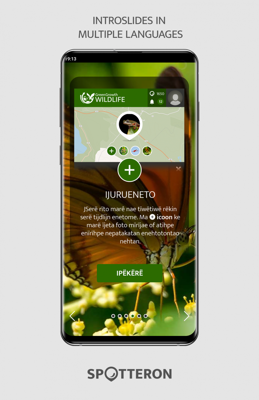 Citizen science initiatives embedded in local settings need to apply the languages spoken in the region thus limiting language barriers and facilitating more inclusive participation. At SPOTTERON we support the vision that Citizen Science is for everyone and thus local language plays a role. More detailed view on the use of language (including complexity, terminology, tone) available in the Science of Citizen Science Book Chapter: Communication and Dissemination in Citizen Science. We are always happy to extend the availability of numerous languages with Latin, Cyrillic, Greek alphabet and beyond. When the user opens the App the first time it displays a number of visually appealing intro slides which introduce the basic usage of the App. The App including these intro slides are automatically displayed in the language a participant uses on their own device if that language is included as a translation in the App toolkit. For other languages the Apps integrate a fallback system to automatically display an internationally common language like English. This is a crucial component thus new users are welcomed in the App and can immediately start participating!