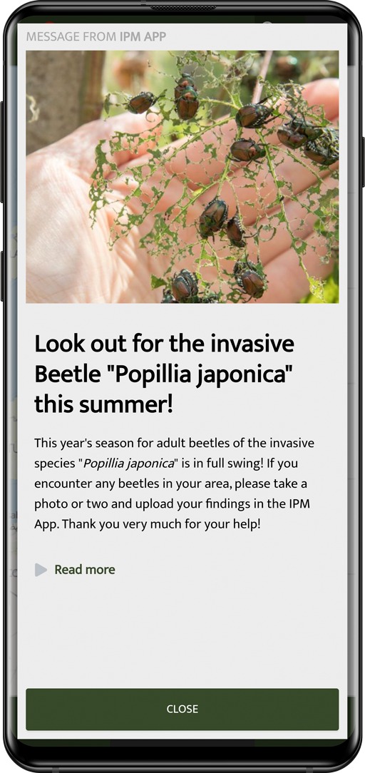 Various Project Messages (Push Messages and Pop-Ups) in different Citizen Science and Public Engagement Apps
