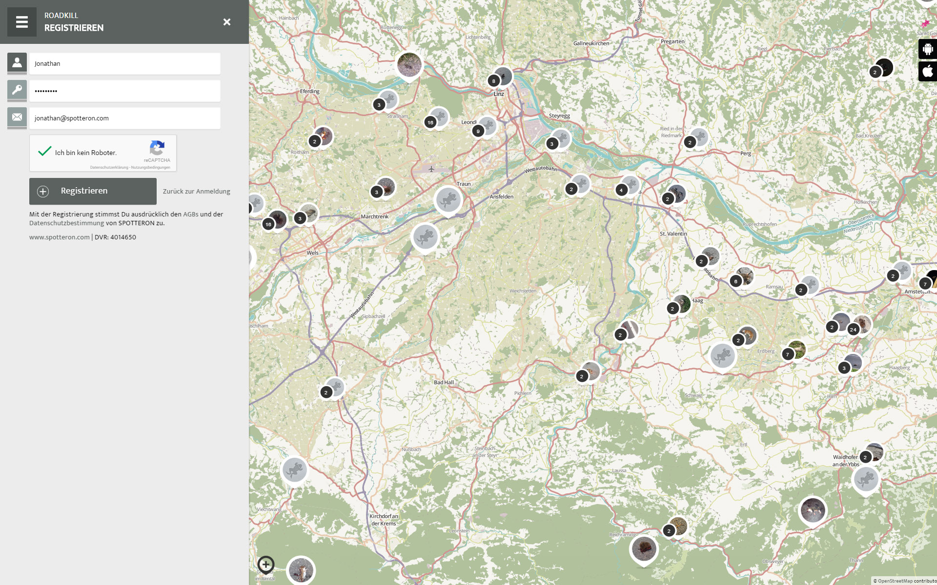Die Citizen Scientists Ihres Projekts können sich nun direkt auf Ihrer Projektwebsite registrieren, um in Folge eigene Spots zu Ihrem Projekt einzusenden oder um die Karte nach eigenen Einträgen zu filtern.