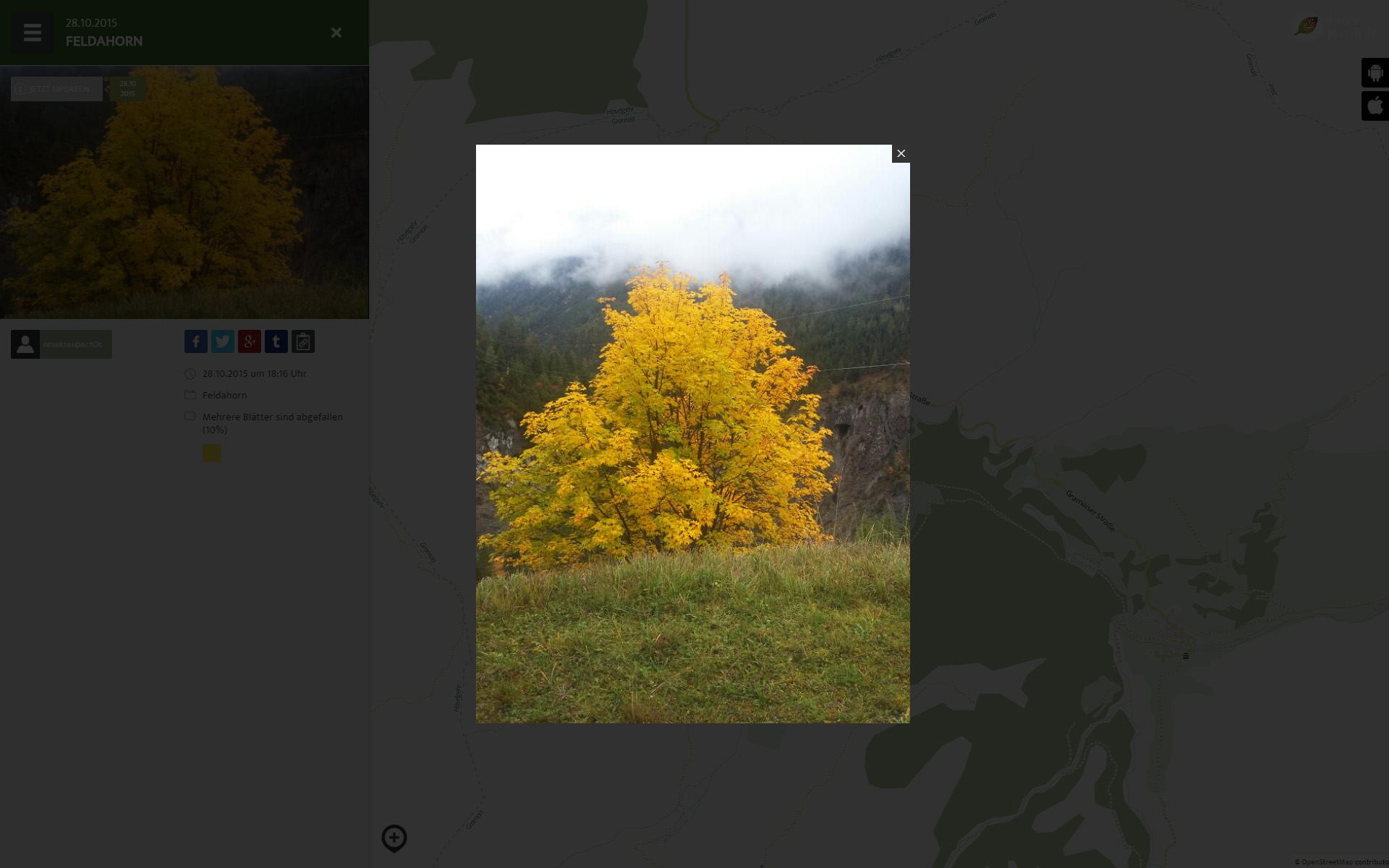 * Lightboxen: Das Bild des jeweiligen Eintrags lässt sich nun in der Detailansicht mittels Overlay vergrössern. Die gezoomte Ansicht legt sich als "Lightbox" über die Karte.