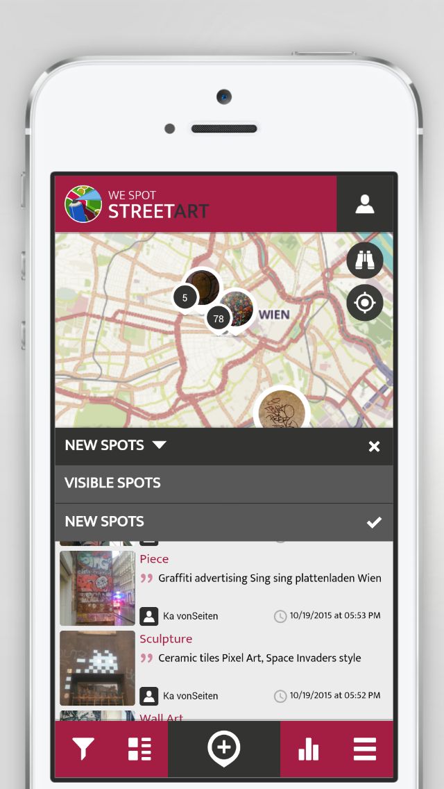 schnelleres EintragenDas Eintragen der Spots ist für die UserInnen einfacher und schneller geworden. Es ist nun nicht mehr nötig, extra die Position zu übernehmen und das Titelfeld wurde mit dem Beschreibungstext fusioniert.