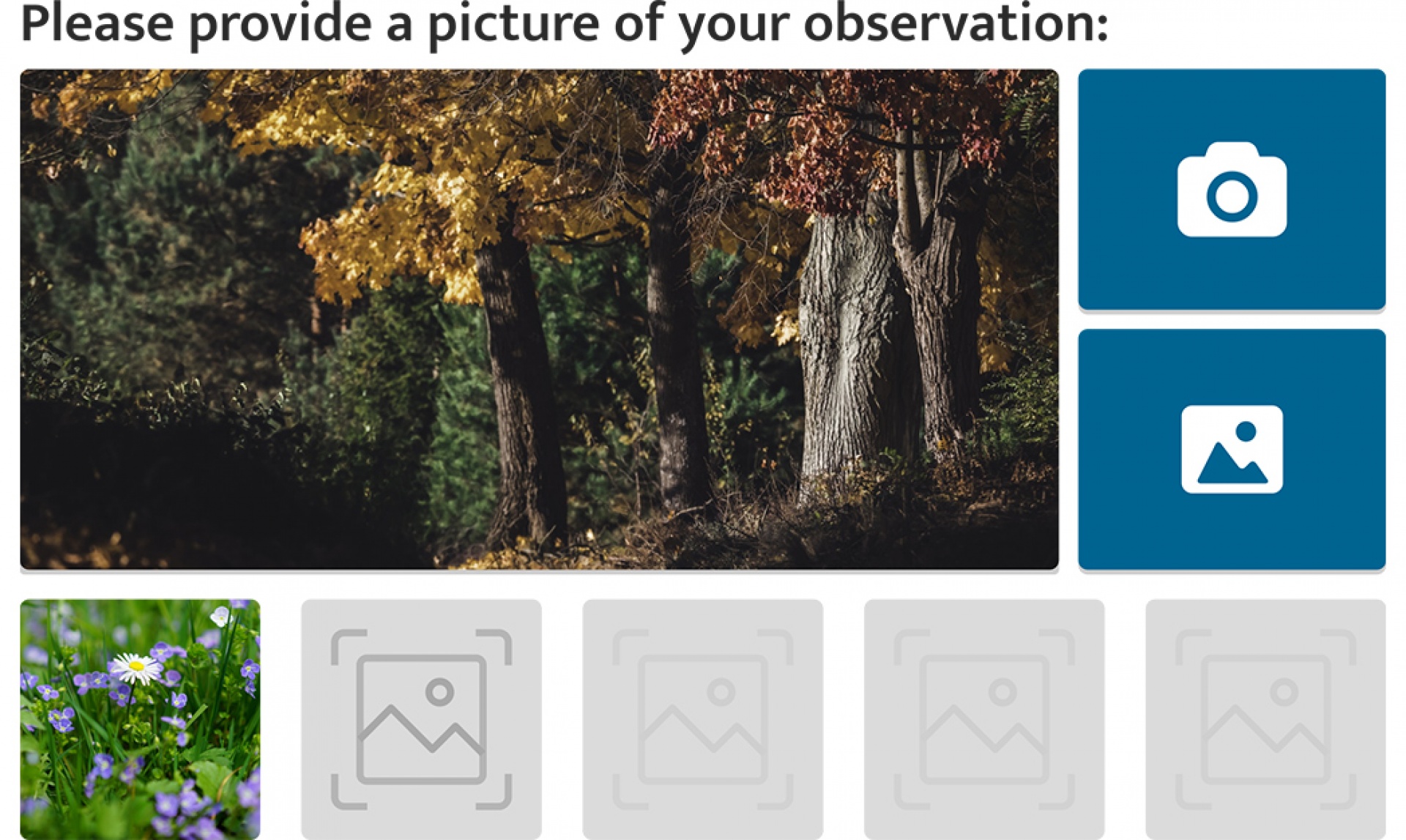 Hochladen von Bildern über die Kamera oder durch Auswahl eines Bildes aus dem Speicher