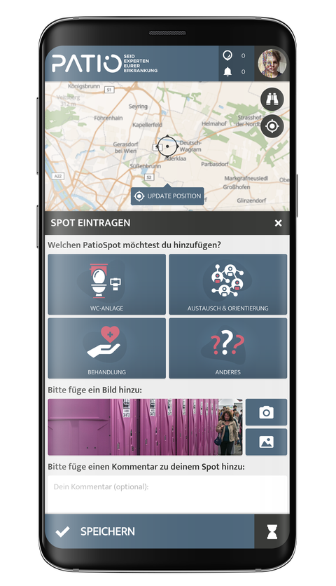 Die Diagnose „Krebs" ist ein einschneidendes Erlebnis und während einer Therapie, sowie auch im Leben danach, fordert er die Betroffenen umfassend heraus. Daher wurde mit aktiver Beteiligung von Betroffenen eine praxisorientierte Lösung entwickelt. Die "PATIOSpots"-App greift in einem mehrstufigen Prozess verschiedene Schwerpunkte auf, die das Leben mit der Erkrankung erleichtern soll.