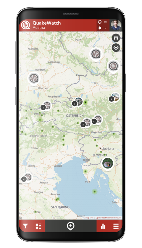 Die Citizen Science App QuakeWatch dient zur makroseismischen Erhebung von Erschütterungsberichten aus der Bevölkerung. Diese sollen den Menschen helfen via SmartPhone ihre Beobachtungen dem Österreichischen Erdbebendienst an der ZAMG mitzuteilen. Die App bietet User:innen folgende Informationen und Möglichkeiten: