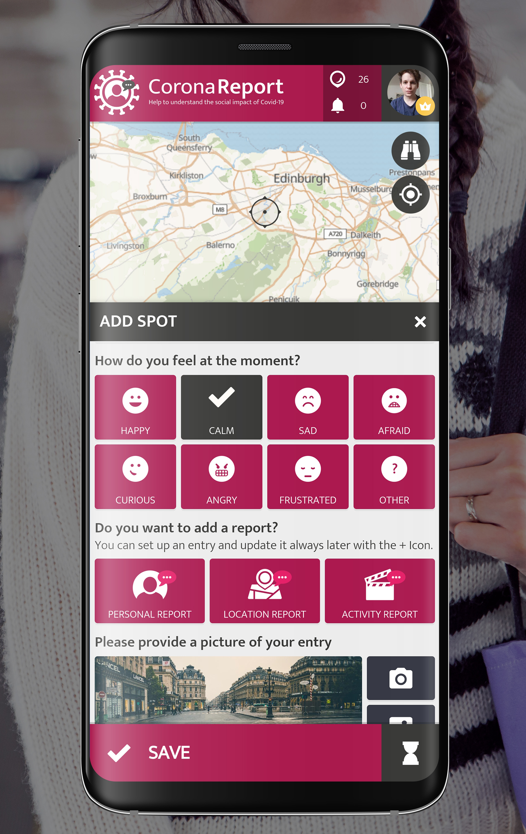 Herausfordernde Zeiten erfordern kreative Lösungen. Die aktuelle Corona-Krise ist ein perfektes Beispiel dafür. Deshalb freuen wir uns, Ihnen mitteilen zu können, dass sich die Universität von Edinburgh erneut mit SPOTTERON zusammengetan hat, um die CoronaReport Citizen Science-App zu erstellen, da das Verständnis der sozialen Auswirkungen von COVID-19 auf die Gesellschaft sehr wichtig ist - nicht nur für die Forschung, sondern auch für die Gesellschaft selbst.